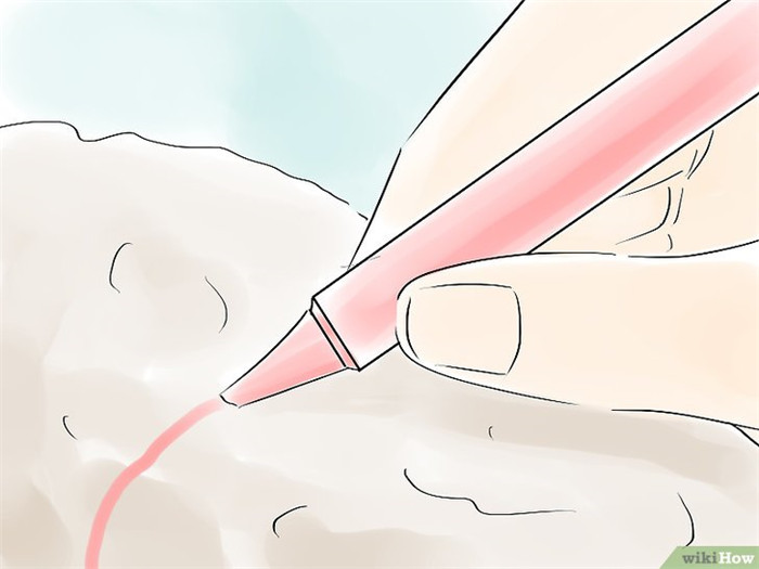 5.在石头上用铅笔或蜡笔做好标记。你想刻怎样的形状,就用笔去标记吧。