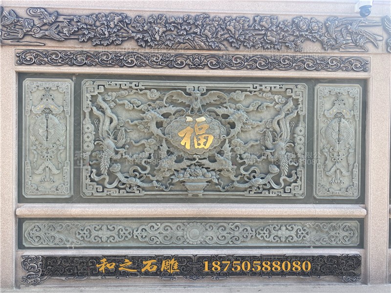 龙、凤、麒麟、狮子等瑞兽祥禽图案,在寺庙石雕浮雕墙上也极为常见,它们不仅以其生动逼真的形象为浮雕墙增添了灵动之美,更蕴含着丰富的吉祥寓意,寄托着人们对美好生活的向往与祈愿 。